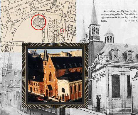 Quant à la synagogue, lieu de la profanation et du miracle, rue des Sols (parallèle au Mont des Arts), devenue Chapelle expiatoire, elle devint le siège de l’Association de l’Adoration Perpétuelle du Très Saint-Sacrement (qui deviendra plus tard la congrégation des Religieuses de l’Adoration Perpétuelle, puis Sœurs de l’Eucharistie) et de l’Œuvre des Églises Pauvres dont le rayonnement sera mondial. La chapelle démolie au 20ème siècle, fut reconstruite à l’identique au cœur des Institutions européennes et devint la Chapelle de la Résurrection actuelle, aux pieds du bâtiment emblématique de l’Europe : le Berlaymont.